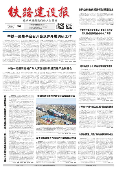 中铁一局董事会召开会议并开展调研工作 中铁一局盛装亮相广州大湾区国际轨道交通产业展览会 张林与兰州市政府常务副市长潘喆开展座谈交流 甘肃铁投集团党委书记、董事长赵四辈 深入西成高铁智能化轨枕厂调研 绍兴地铁2号线07标迎来观摩交流团 广州地铁11号线一分部三工区项目收获业主点赞表扬 新疆高速公路跨径最大转体桥成功转体 西北地区特大型铁路综合交通枢纽——西安东站普速场正线顺利开通 许昌绕城高速上跨京广铁路主桥双幅转体就位 深大城际铁路五白区间右线盾构顺利贯通